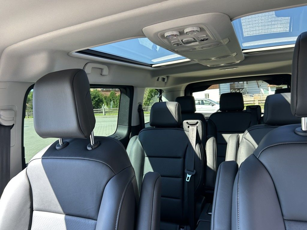 mit Diamant Finish, R17 X, 2 elektrische Schiebetüren hinten sensorgesteuert mittels Fußbewegung oder über die Fernbedienung des Fahrzeugschlüssels bedienbar, Heckklappe mittels Fernbedienung bedienbar, Außenspiegel elektrisch einstell-, ein klapp- und beheizbar, Eco-LED-Scheinwerfer mit Tagfahrlicht, Nebelscheinwerfer mit Abbiegelichtfunktion, Hintere Seitenscheiben stark abgedunkelt, 10 % Lichtdurchlässigkeit, LED-Innenbeleuchtung, 2-Zonen Klimaautomatik vorne mit automatischem Umluftsystem, zusätzliche Klimaanlage für hinteren Bereich, Sitzheizung 3-stufig vorne für Fahrer und Beifahrersitz inkl. Belüftung
