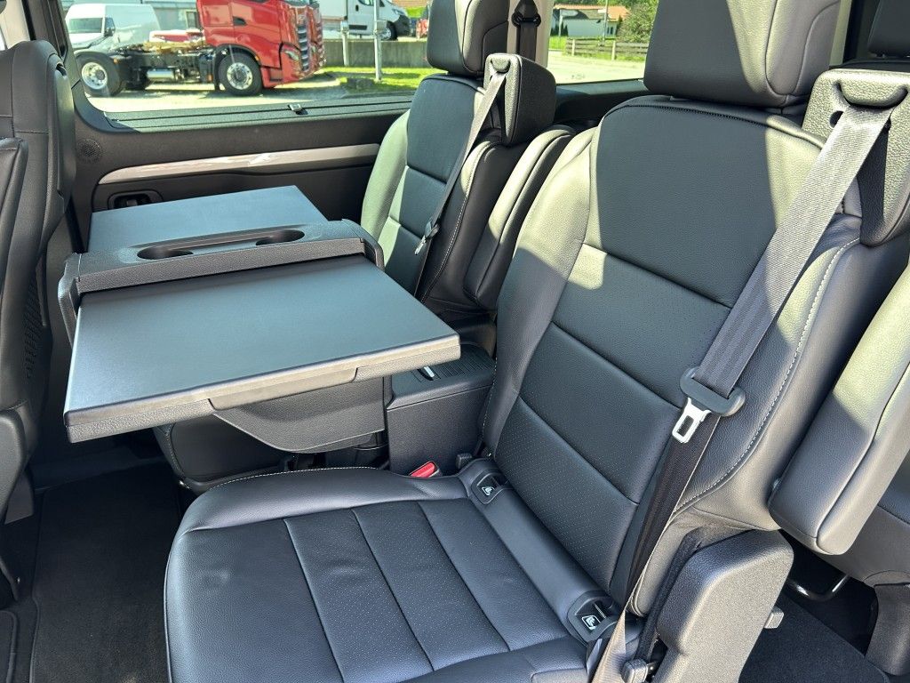 Neigung einstellbar und umklappbar; Tisch (auf zusätzlicher Schiene) zwischen den Einzelsitzen in Reihe 2 , Reihe 3: 3er Sitzbank 2/3:1/3 auf Schienen verschieb- und herausnehmbar, mit ISOFIX, Rückenlehnen in der Neigung einstell- und klappbar, Audio HIFI 9-Lautsprechersystem mit Subwoofer unter dem Beifahrersitz und Centerlautsprecher im Armaturenbrett, Digitales 10"-Kombiinstrument mit Farbdisplay & Freisprecheinrichtung, 10"-Touchscreen-Infotainmentsystem, DAB+ Tripletuner, Bluetooth, 2 USB-CAnschlüsse vorne, Onboard 3D Navigationssystem, Visiopark mit 180° Rückfahrkamera, Parksensoren vorne und hinten, graphischer Darstellung und Totwinkel-Assistent, Elektrische Parkbremse, Adaptive Geschwindigkeitsregelanlage (ab 0 km/h) mit Geschwindigkeitsbegrenzer